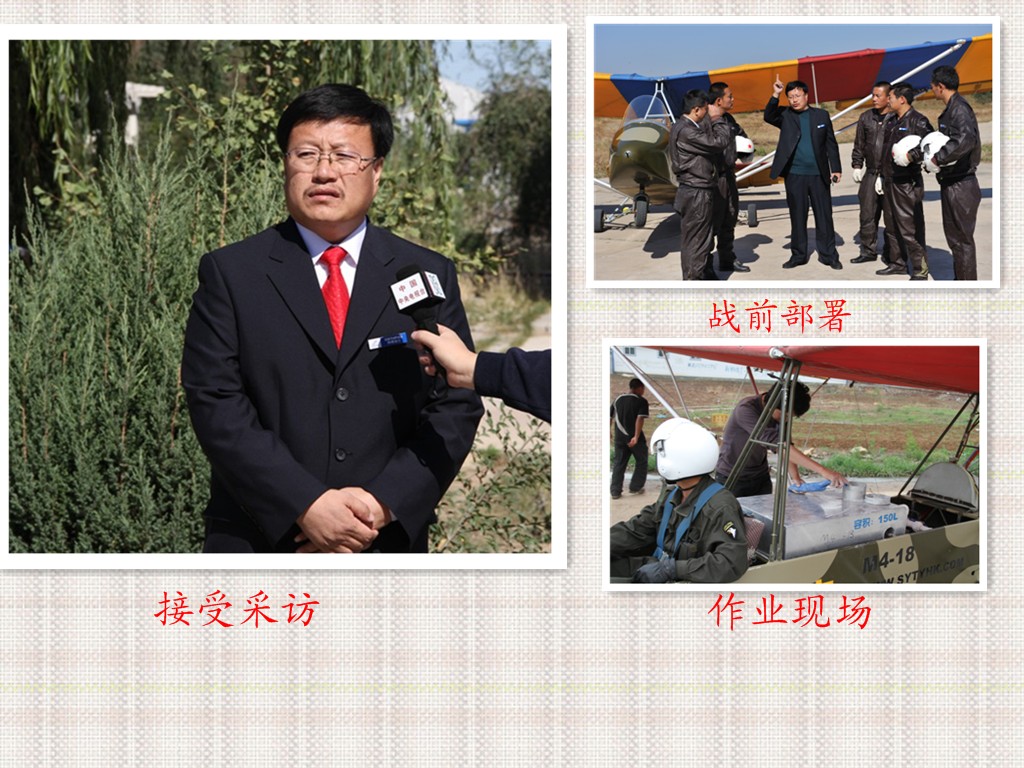 在祖國版圖的北方,茫茫的科爾沁沙地上活躍著一支以下崗職工創(chuàng)建的充滿傳奇色彩的隊伍--通遼市神鷹通用航空有限公司,他是全國第一家以超輕型飛機注冊的中國通用航空企業(yè),同時也是全國第一家集飛機播種、空中施肥、空中噴灑植物調(diào)節(jié)劑、空中除草、防治農(nóng)林牧業(yè)病蟲害、草原滅鼠、防治衛(wèi)生害蟲、航空護林、空中拍照、私用飛行駕駛執(zhí)照培訓(xùn)、航空運動訓(xùn)練飛行、航空運動表演飛行、個人娛樂飛行為主營業(yè)務(wù)的綜合性通用航空企業(yè)。現(xiàn)有超輕型飛機30余架,號稱中國私人第一飛行機群,從業(yè)人員70余人的專業(yè)進行農(nóng)林牧業(yè)作業(yè)的社會福利型團隊,多年來在防治農(nóng)林牧業(yè)病蟲害工作中默默無聞的為改善祖國生態(tài)環(huán)境做著不懈的努力,截止2010年9月1日,在我國山東省、河北省、遼寧省、吉林省、內(nèi)蒙古自治區(qū)共進行飛機防治農(nóng)林牧業(yè)病蟲害和飛機播種2500萬畝,積極參與了“綠色奧運環(huán)保飛行”、國家項目“京津唐風(fēng)沙源治理工程”、“遼寧省荒山治理工程”、“內(nèi)蒙古荒沙荒山治理工程”等多項國家“十一.五”期間重點工程項目,特別是2008年以后,在我國北方沿海地區(qū)美國白蛾泛濫,公司上下齊動員在蟲災(zāi)最嚴(yán)重的河北省、山東省連續(xù)三年作業(yè),為抑制美國白蛾在我國大面積泛濫做出不懈努力,得到當(dāng)?shù)卣陀嘘P(guān)單位的一致好評,2009--2010年內(nèi)蒙古自治區(qū)西部蝗蟲泛濫,大片農(nóng)田、草原頃刻間被吞噬,神鷹航空公司義不容辭,積極參加到與自然災(zāi)害作斗爭的現(xiàn)場,以一絲不茍、認(rèn)真負(fù)責(zé)的精神,在自然環(huán)境極其艱苦的條件下很好的完成任務(wù),許下了“蝗蟲不滅不回家”的豪言壯語。得到有關(guān)部門和廣大群眾的一致好評。